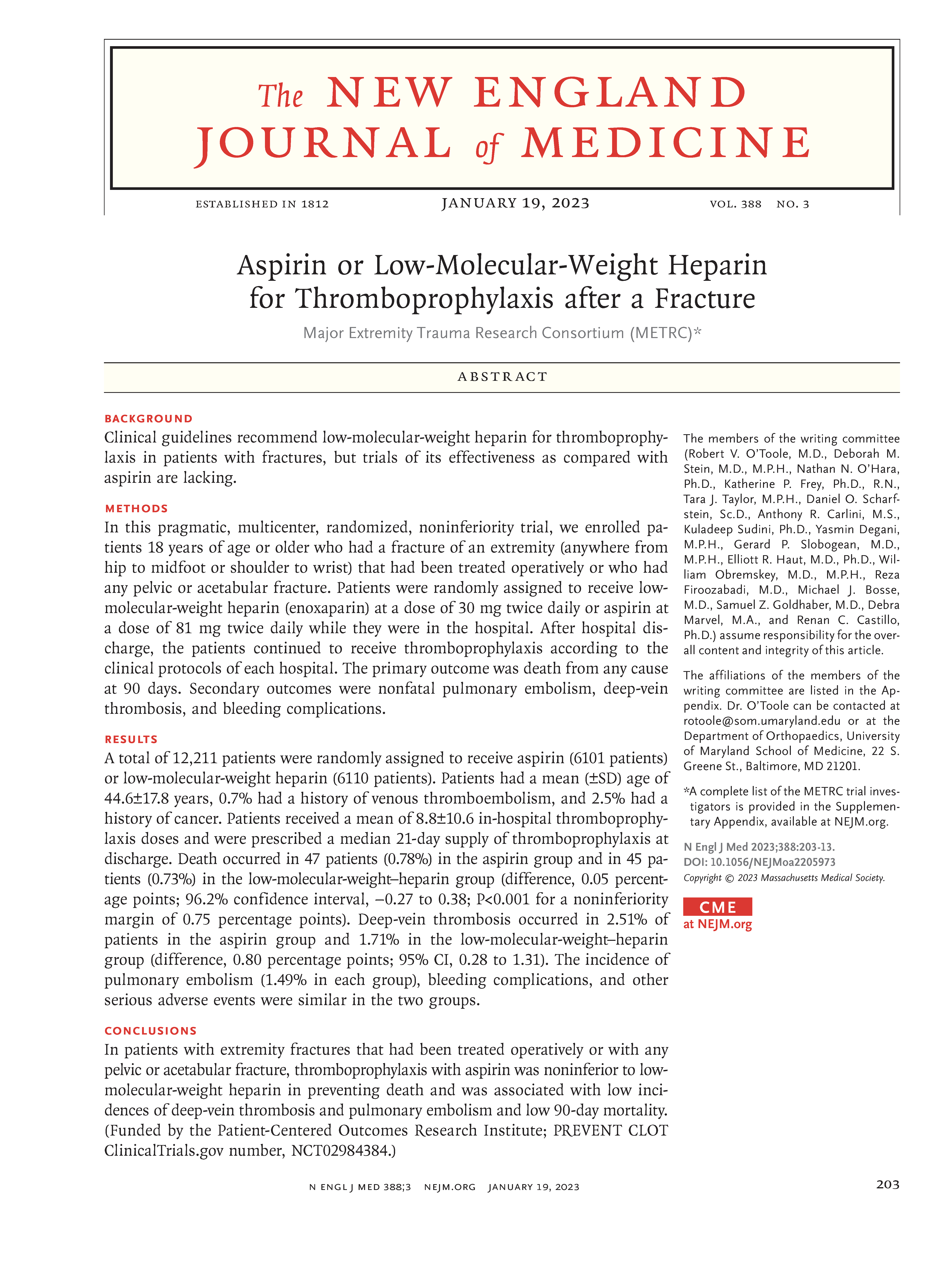 - Aspirin or Low-Molecular-Weight Heparin for Thromboprophylaxis after a Fracture.