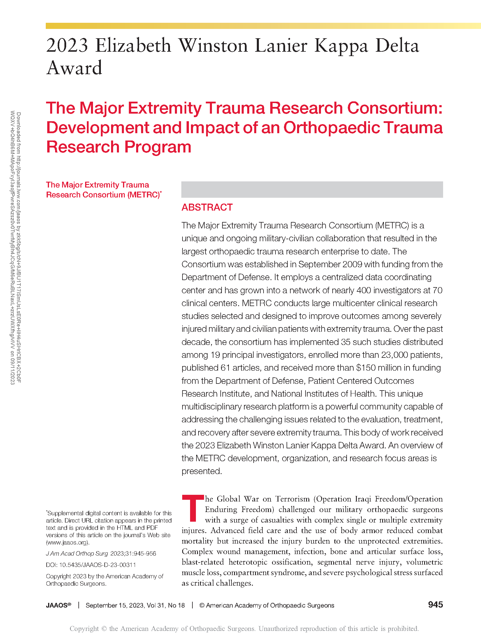 - The Major Extremity Trauma Research Consortium: Development and Impact of an Orthopaedic Trauma Research Program.